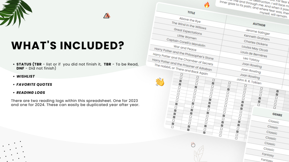 - Two Reading Logs - One for 2023 and one for 2024. These can easily be duplicated again and again so you can track your reading 2024 and on.